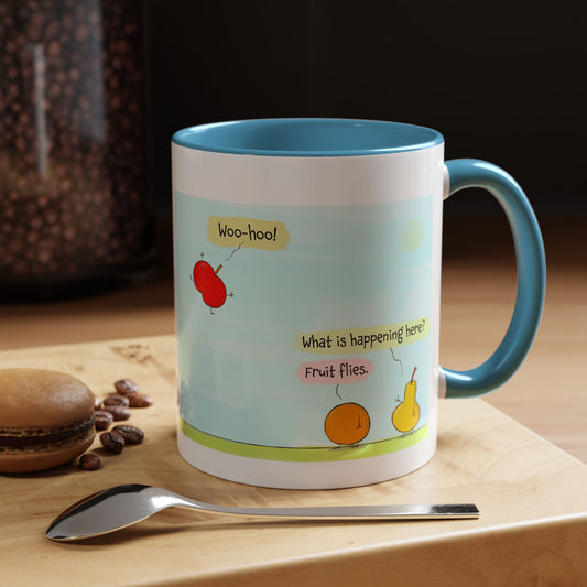 Funny Pun With Flying Red Apple Orange Pear and Fruit Flies Accent Coffee Mug 11oz