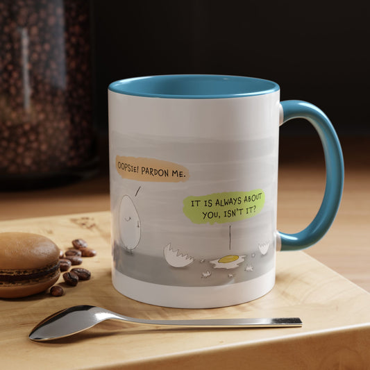 Funny Pun With The Egg And Personality Clash In The Workplace Sarcastic Joke Cartoon Accent Coffee Mug 11oz