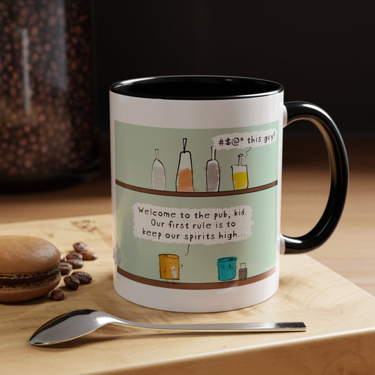 Bar Pun Joke With A Zen Master In A Bar Two Beer Cans Cartoon Accent Coffee Mug 11oz