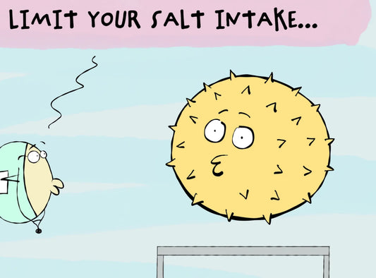 The Doctor And The Blowfish With High Blood Pressure And Salt Intake cartoon print