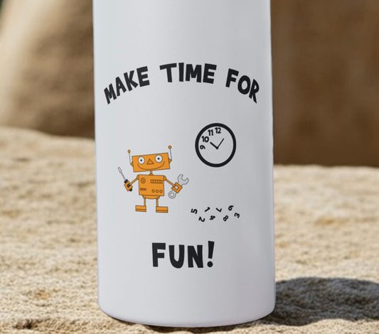 Motivational Make Time For Fun Stainless Steel Water Bottle With Cartoon Robot for Boys Eco-Friendly Hydration