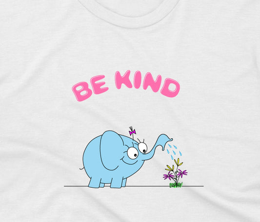 Be Kind Blue Elephant Watering Beautiful Flowers In The Garden pink white cotton shirt for girls