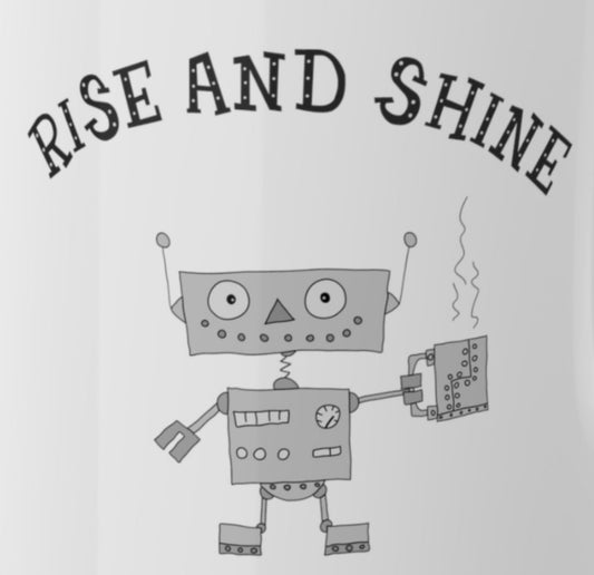 Rise and Shine With A Funny Robot Holding A Ceramics Steel Mug Accented Coffee Mug 11oz
