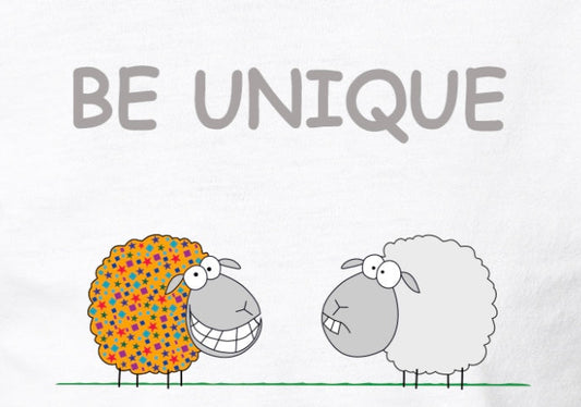 Be Unique Illustration with Colorful Cute Sheep and Inspirational Message Cotton Shirt for Positive Children