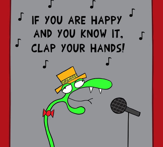 A Happy Snake In A Bar And Sings The Song If You Happy And You Know It Clap Your Hands Karaoke Night music pun joke