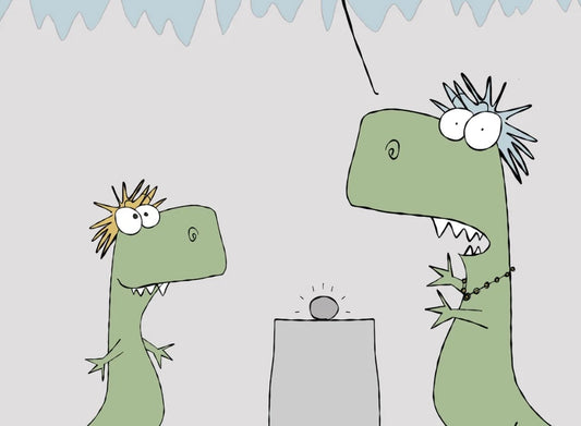 Funny Dinosaurs Telling Future and Oil And Gas Industry Job Prospects Joke Fine Art Print