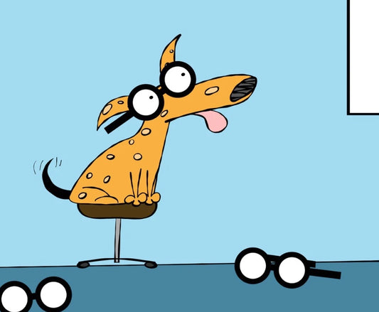 Funny Cartoon With Orange Dog In The Optometrist Office Wearing Reading Glasses fine art print