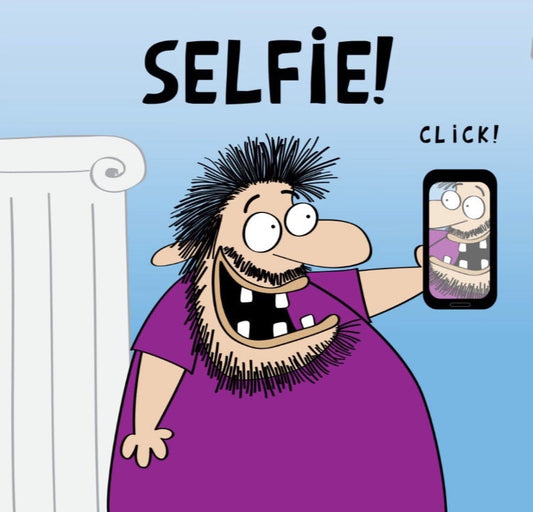 The Evolution Of Man From Caveman Making Fire To A Tourist Making Selfies With iPhone funny cartoon print