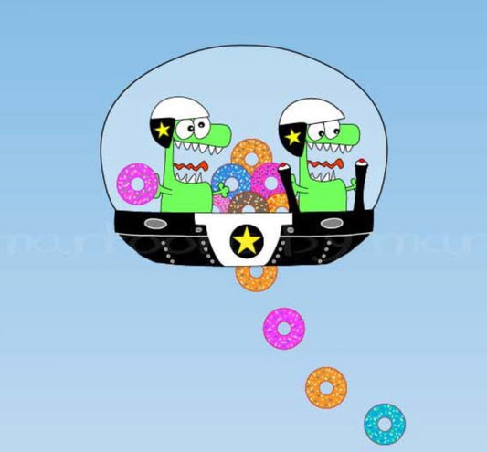 Galaxy Police Cops In A Space Cruiser And Doughnuts In A Bakery joke cartoon print