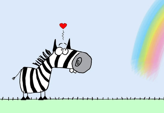 Funny Black And White Stripes Zebra and A Rainbow With Beautiful Colors Falling In Love high quality print