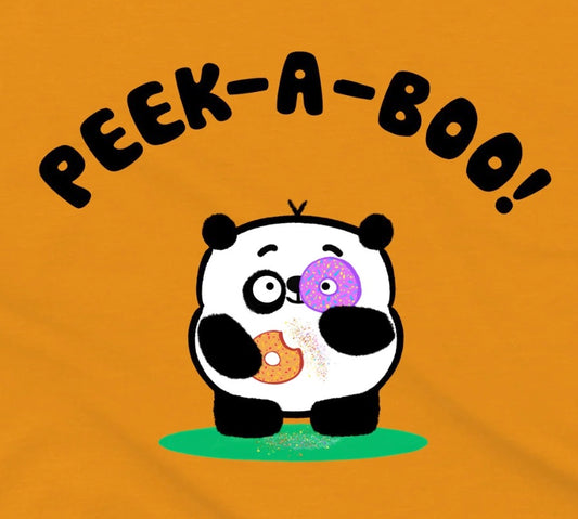 Cutest Panda Playing Peek-A-Boo With Delicious Doughnuts Colorful Cotton T-shirt for girls and toddlers