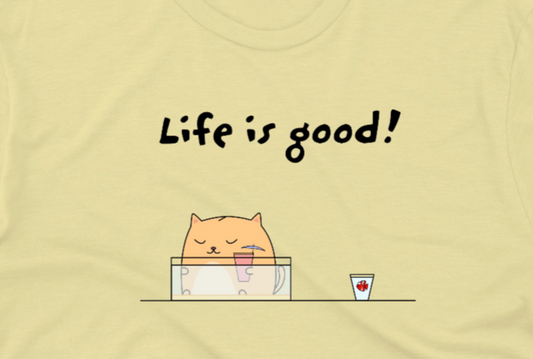 Life Is Good Inspirational Message With A Cute Cat And A Fish Stainless Steel Bottle 12oz, 18oz, 32oz