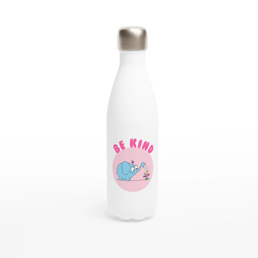 Be Kind Blue Elephant And Flowers White Stainless Steel Water Bottle 17oz