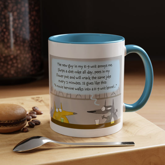 Pun Joke With Two Funny K-9 Dogs And Annoying Co-worker Accent Coffee Mug 11oz