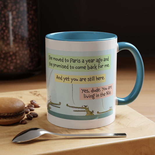 Pun With The Funny Crocodiles In Nile And The Living In Denial Breakup Accent Coffee Mug 11oz and print