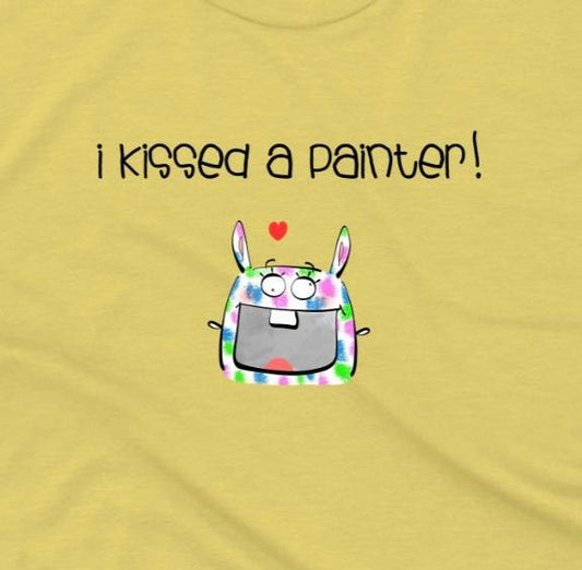 White Bunny Artist In Love Covered In Paint I Kissed A Painter shirt for girls