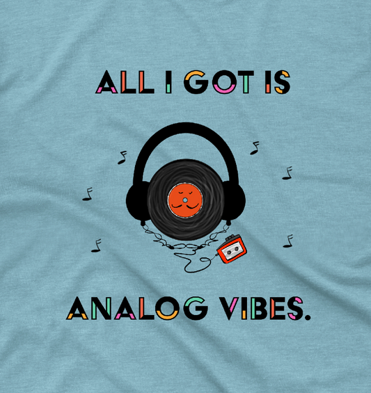 Funny Shirt With A 70's And 80's Joke For Audiophile Analog Music Vinyl With Headphones Good Vibes Unisex Cotton t-shirt