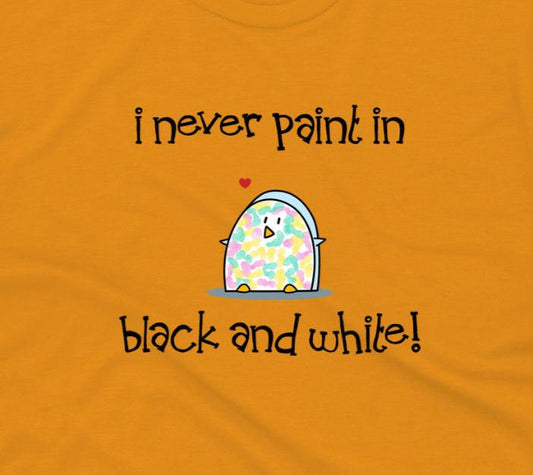 Funny Shirt With Cute Penguin Artist Paint And I Never Paint In Black And White unisex cotton t-shirt