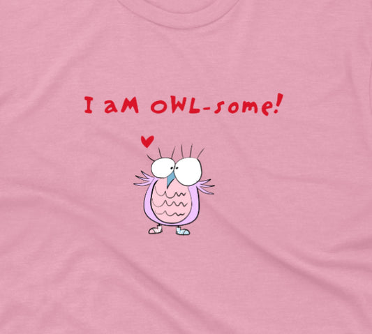 Cute Pink Owl And I am Owl-some Pun Joke Inspirational Message For Girls Kids Regular Fit Tee