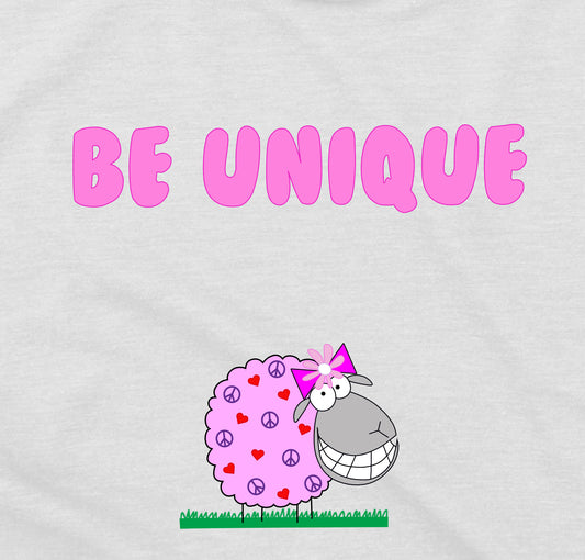 Cute Pink Sheep Be Unique Inspirational Message Regular Fit T-Shirt For Pre-teen Girls