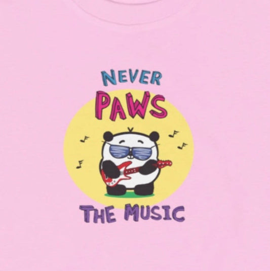 Cute Panda With Cool Sunglasses Playing Red Electric Guitar Never Pause the Music Pun Toddler's T-shirt sizes 4T, 5 and 6T