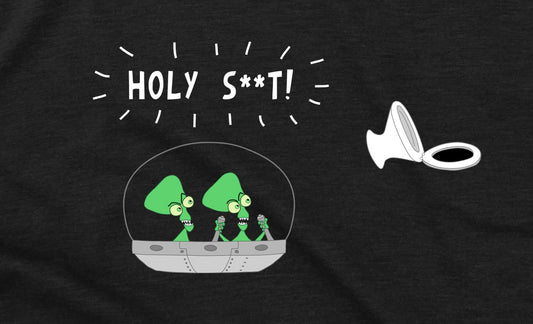 Funny Aliens And Toilet Seat In Space Holy Shit Joke Black Short Sleeve Cotton T-shirt
