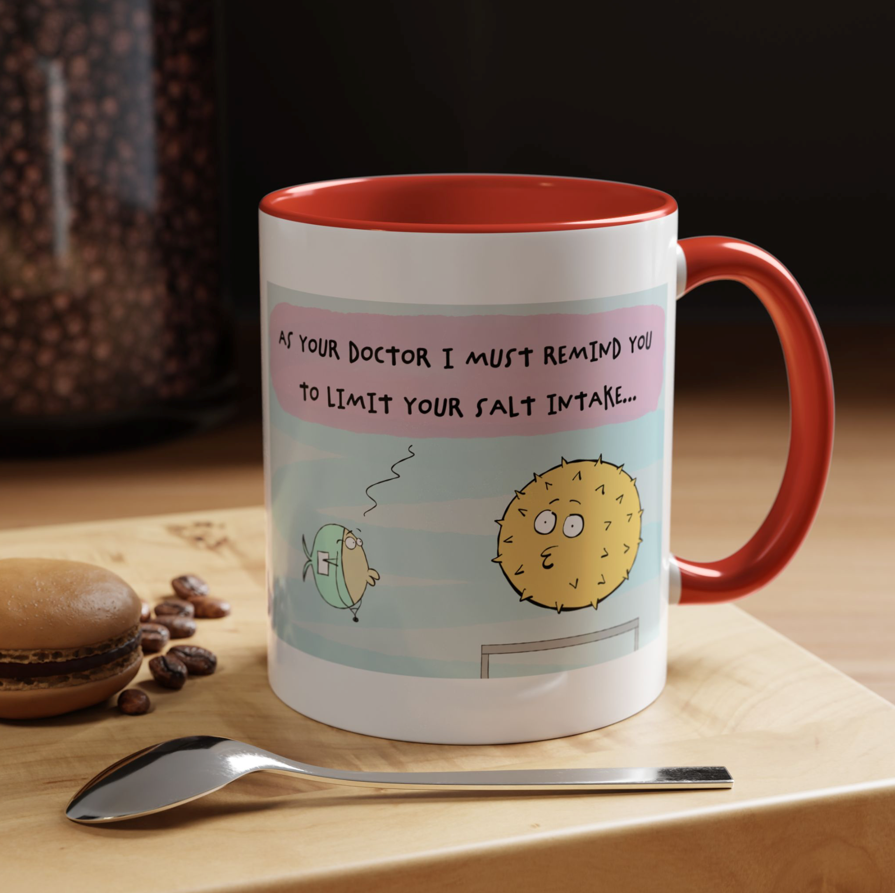 Funny Health Reminder Coffee Mug, Humorous Gift for Doctors, Cute Mug for Salt Lovers, Kitchen Humor, Quirky Coffee Cup